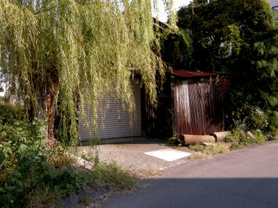忍ヶ丘から星田方面へ自転車で走る時、府道20号線の星田駅付近は自転車も通過できない混雑になりますので、それを避ける意味もあって、大阪病院前バス停から脇道に入ります(もっともこちらが昔のメインストリートだと思うのですが…)。入ってすぐ、右手に柳の木とともに農小屋が立っています。近くには水路もあって、田に水を入れる頃になると水の音も聞こえます。
