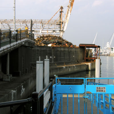 落合下渡船もまた工場地帯と言っていい場所にポツンとあります。くず鉄の山でカラスがうるさく鳴いていました。