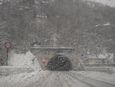 開田へ抜ける地藏トンネル手前で天気が荒れ始めました。